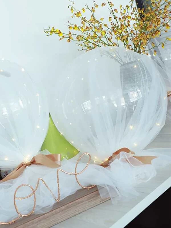 ลูกโป่งตกแต่ง โปร่งใส & ริบบิ้น 1 เซต p-52