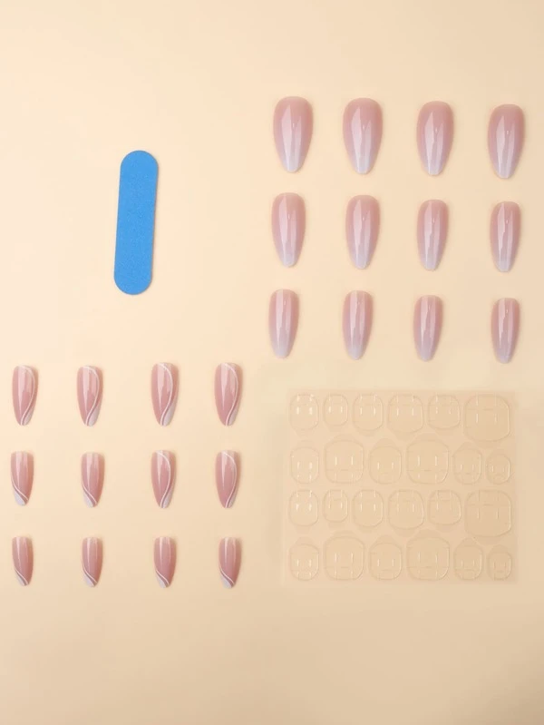 เล็บปลอม ยาว อัลมอนด์ ออมเบร 24 ชิ้น & เทปกาว 1 แผ่น & ตะไบเล็บ 1 ชิ้น c-74