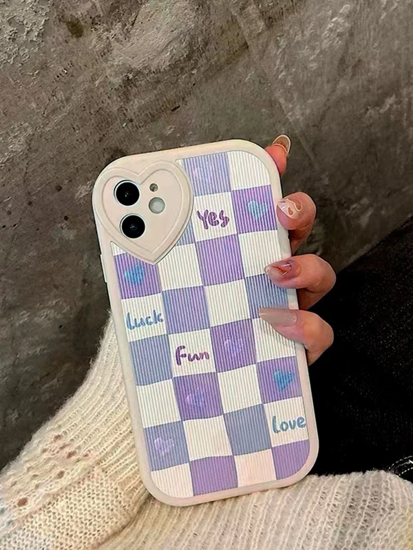 เคสโทรศัพท์ ลายหัวใจ ลายตารางหมากรุก ค-28