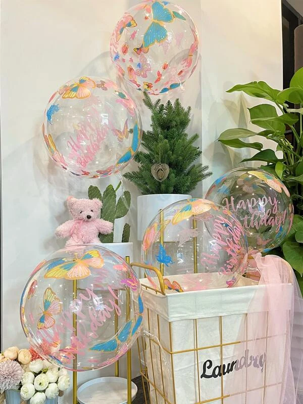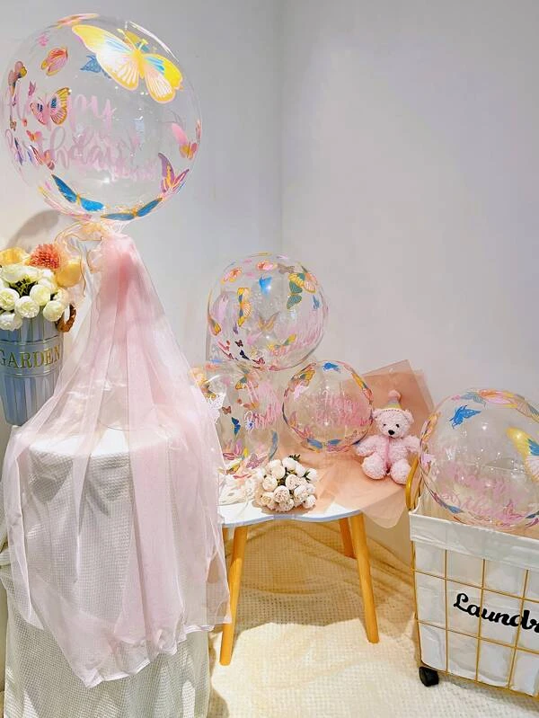 ปาร์ตี้วันเกิด ลาย ผีเสื้อ ลูกโป่ง 5 ชิ้น p-41