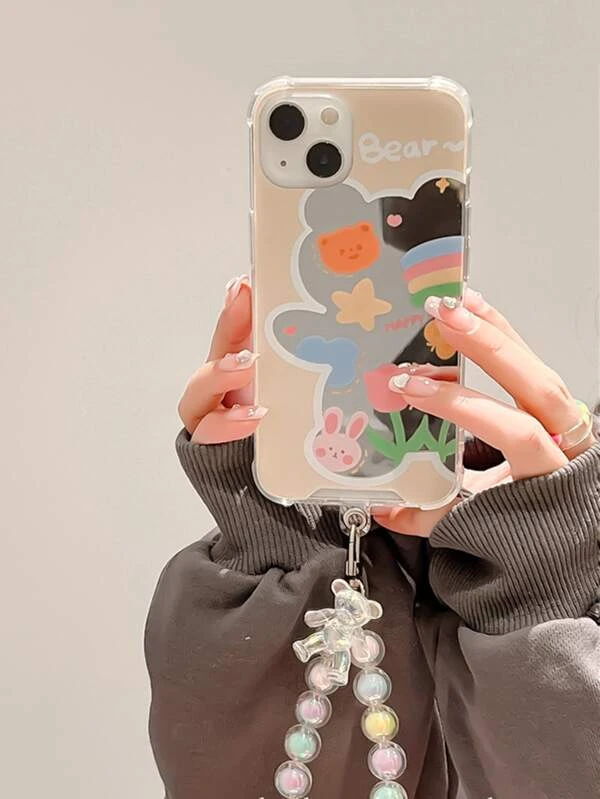 เคสโทรศัพท์กระจก ภาพ การ์ตูน พร้อมสายคล้อง c-64