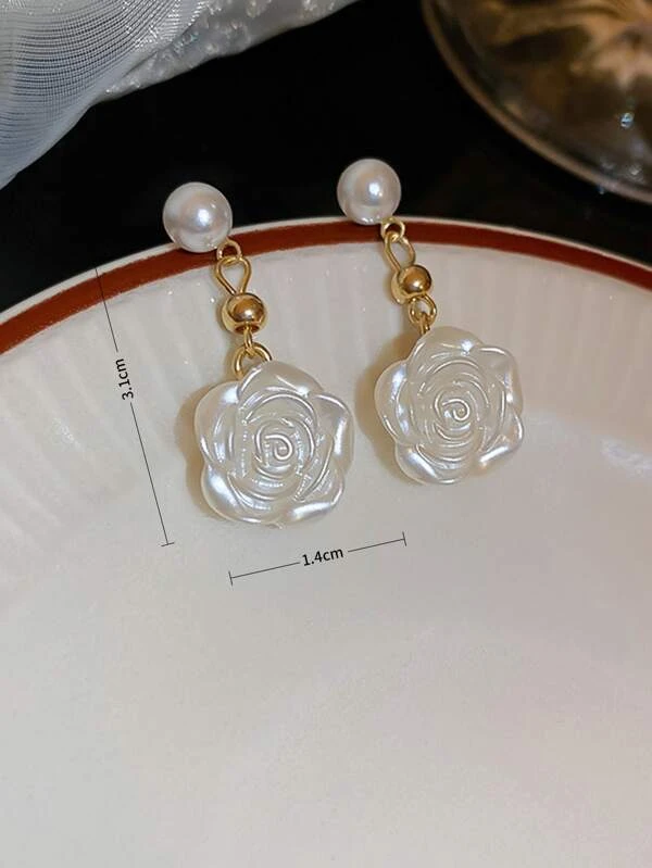 ต่างหูหล่น ประดับ มุกเทียม ดอกไม้ e-12