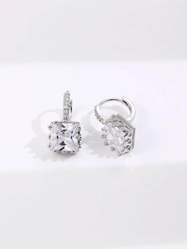 ต่างหู ตกแต่ง เรขาคณิต เพชรคิวบิกเซอร์โคเนีย e-16