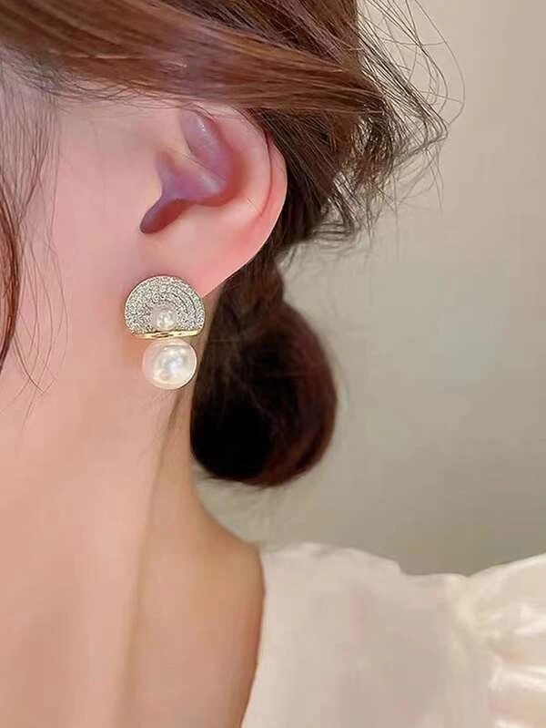 ต่างหูเม็ดเดี่ยว ติดเพชร และ แต่งไข่มุกเทียม e-72