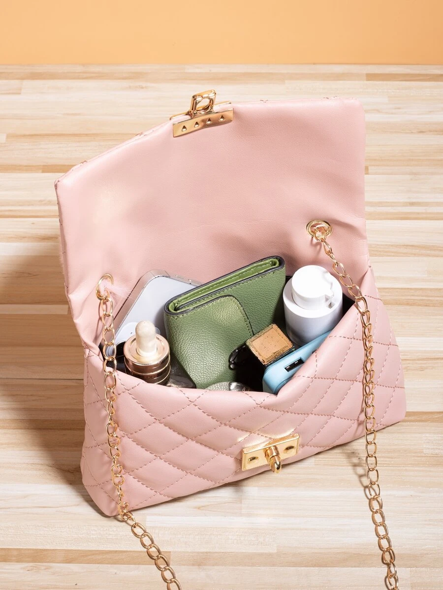 กระเป๋าสี่เหลี่ยม ผ้าควิลท์ บิดล็อค กระเป๋า Flap Bag เชื่อมต่อ v-70