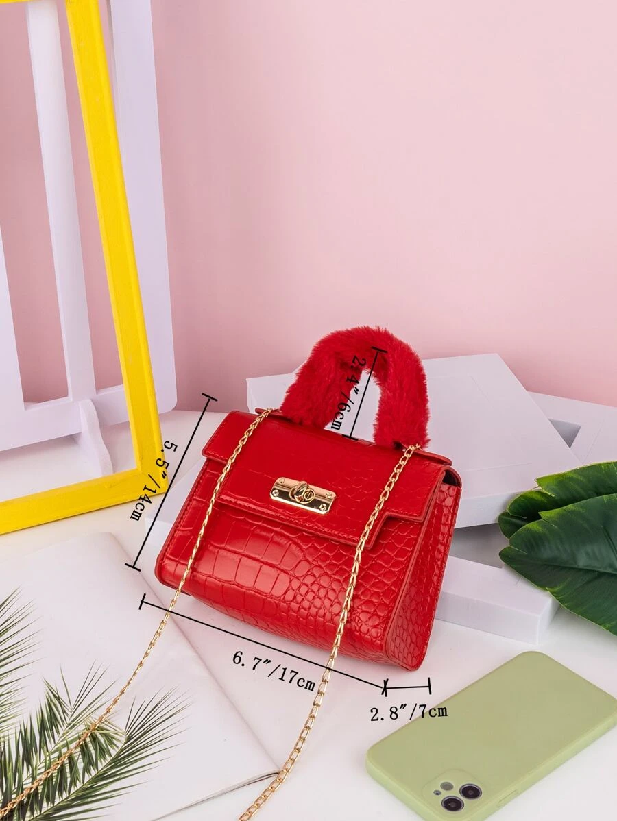 กระเป๋าสี่เหลี่ยม มินิ นีออนแดง ลายนูนจระเข้ Flap โซ่v-68