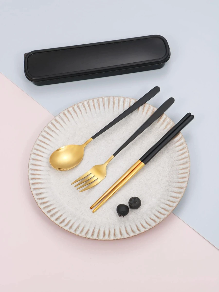 ชุดช้อนส้อมตะเกียบ ช้อนส้อมสแตนเลส แบบพกพา สามชิ้น hh-9