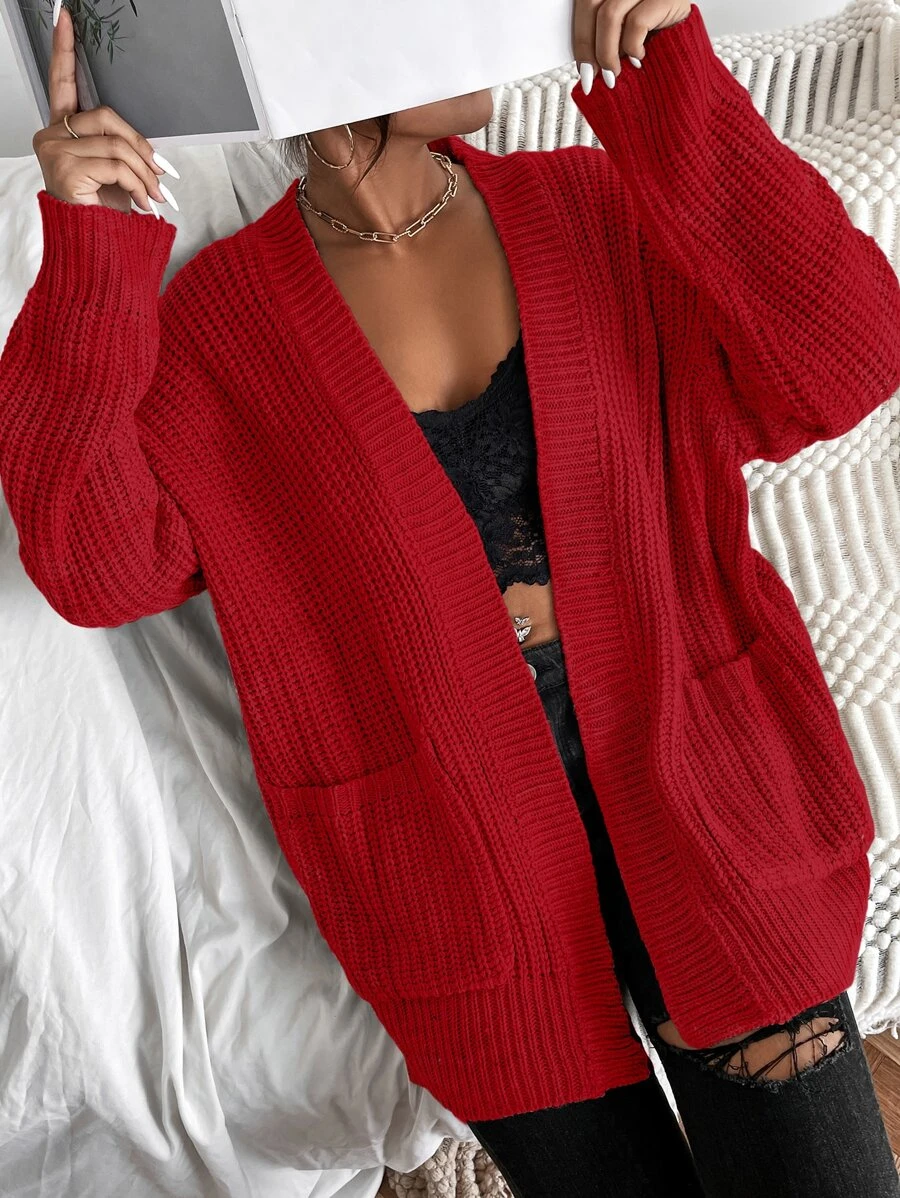 คาร์ดิแกน สีพื้น กระเป๋าคู่ ผ้าถักริบ i-36