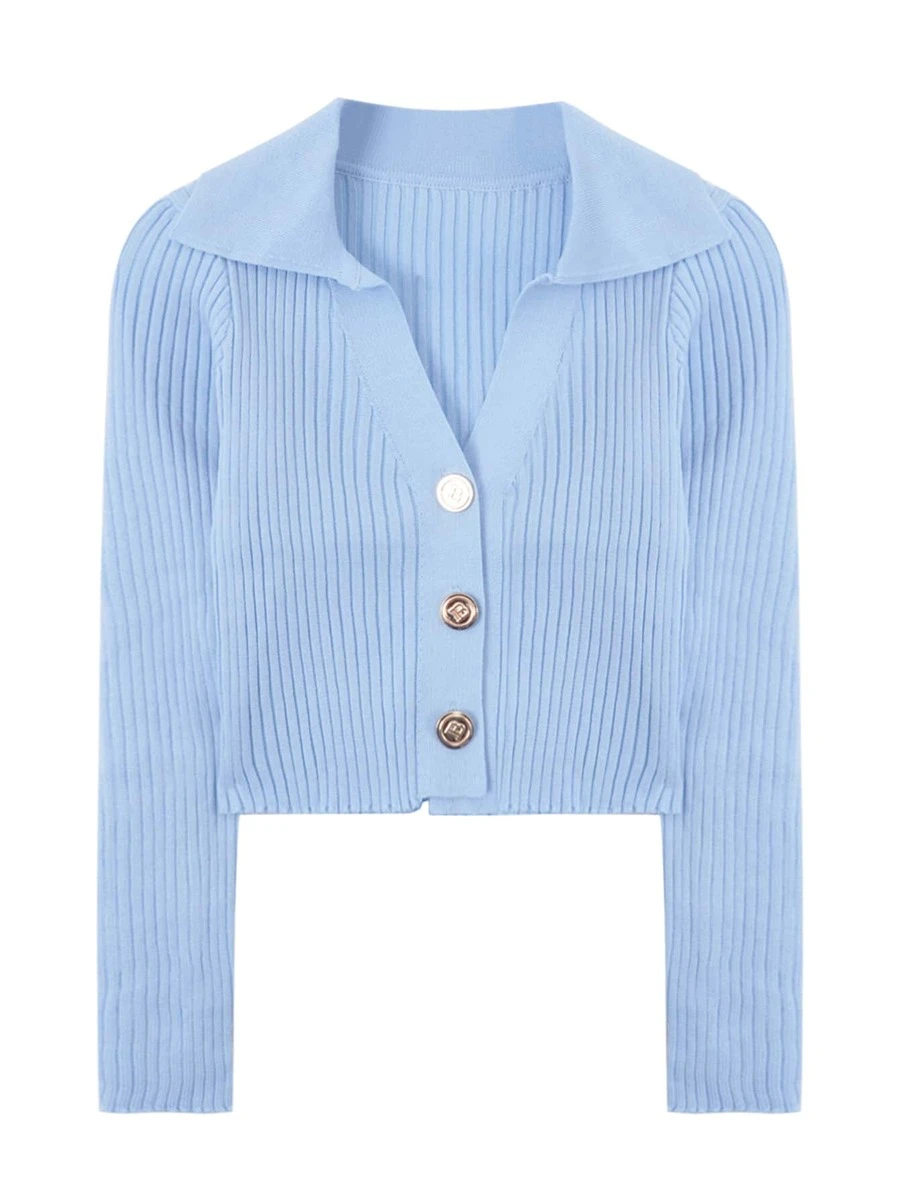 เสื้อคาร์ดิแกน ครอป สีพื้น กระดุมแถวหน้า i-65