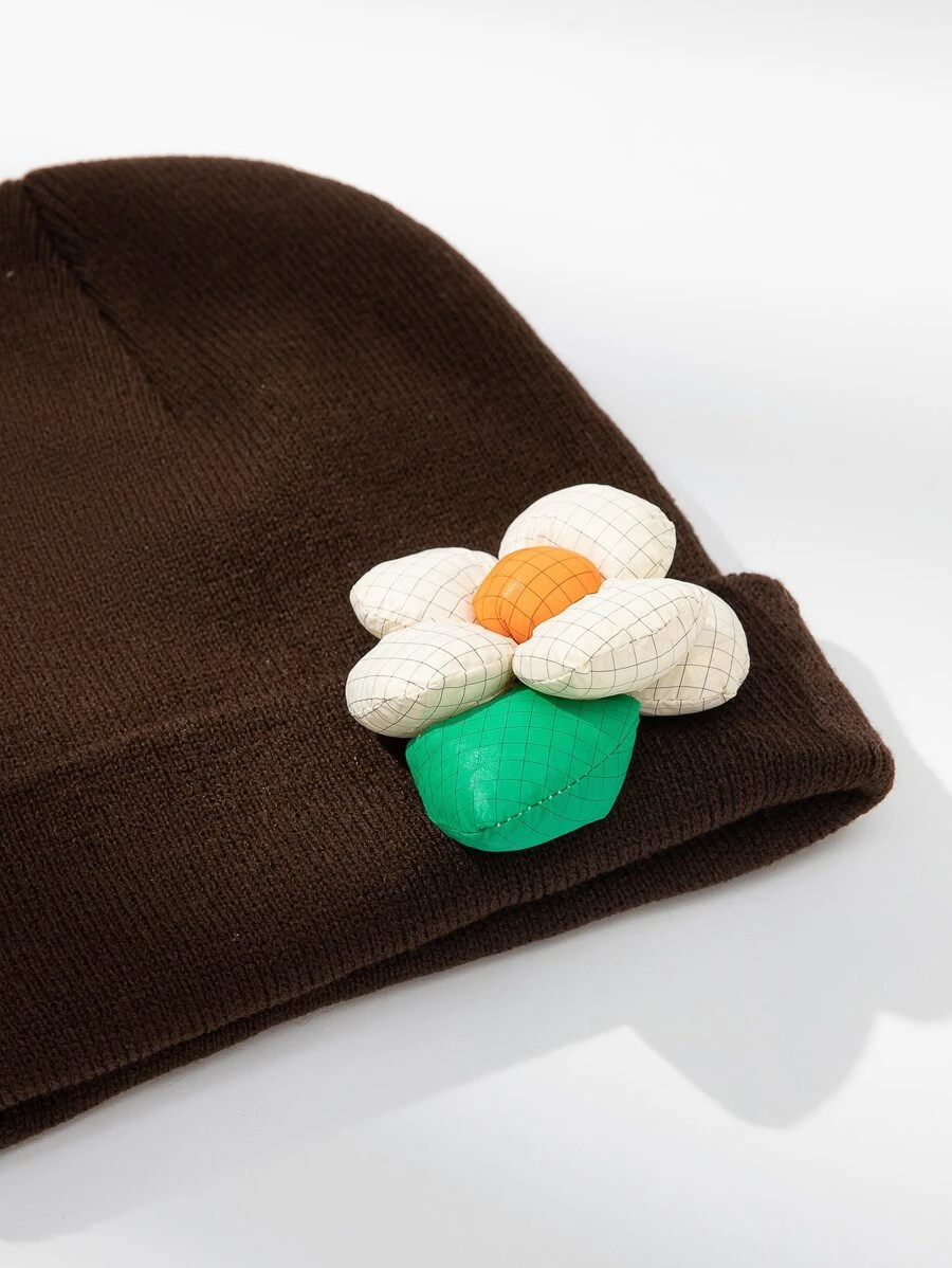 หมวกบีนนี่ ขอบพับ ตกแต่ง ดอกไม้ i-75