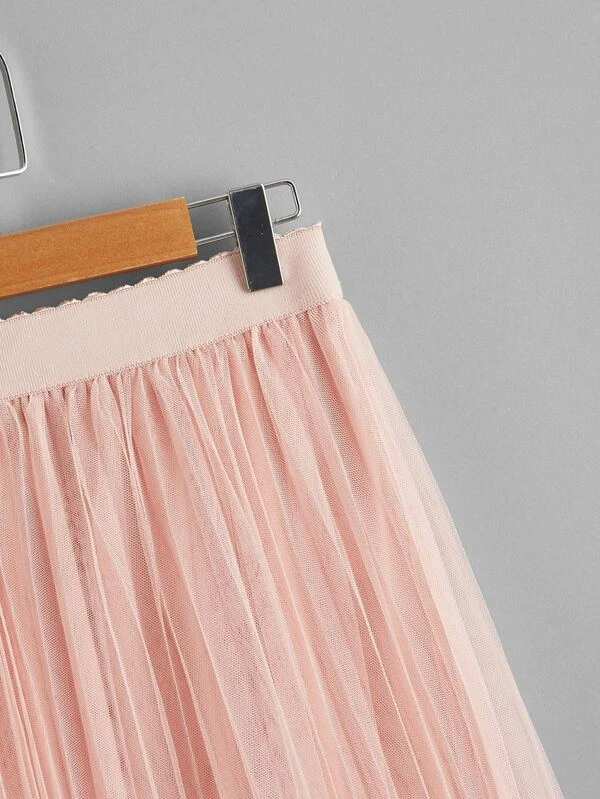 กระโปรง เอวยางหลวม จับพลีต ผ้าโปร่ง jj-111