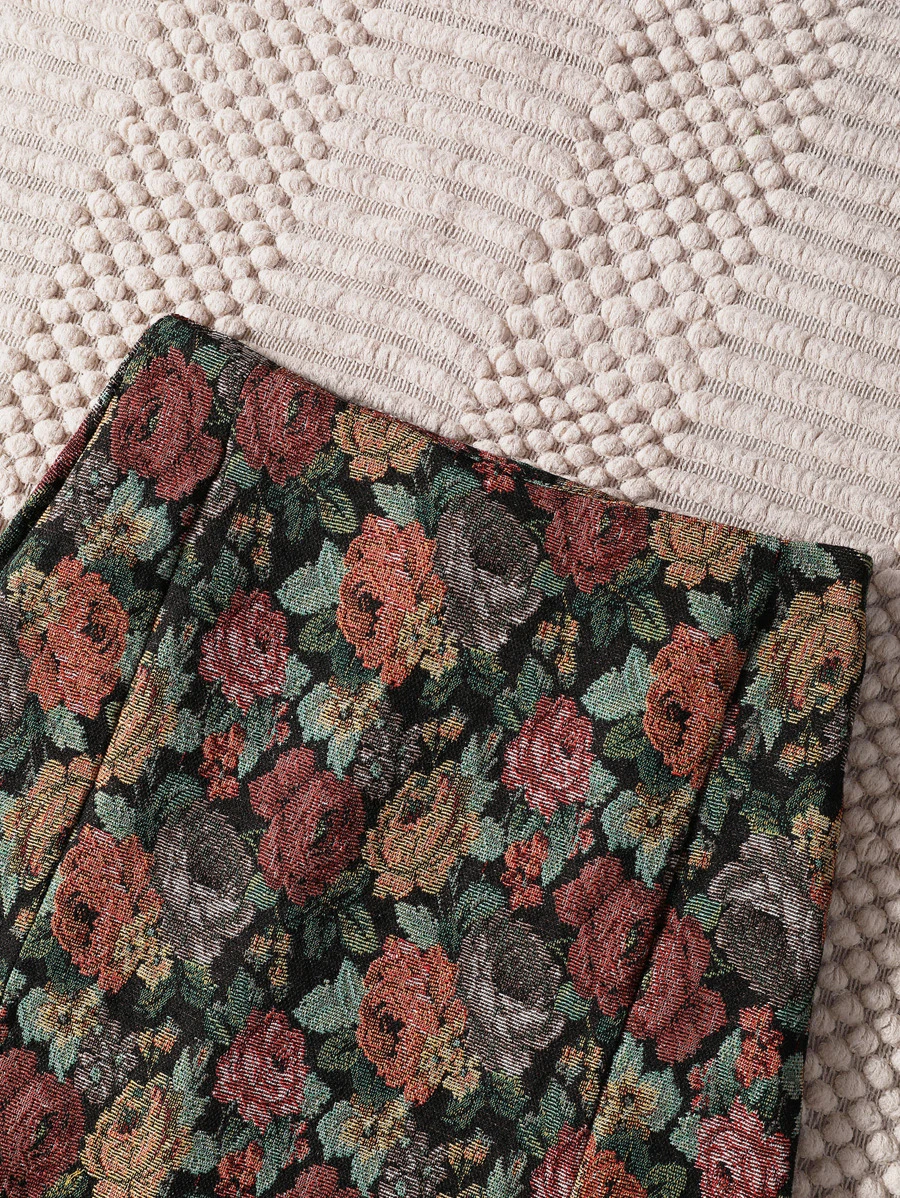กระโปรง ชายผ่า ลายดอกไม้ jj-13