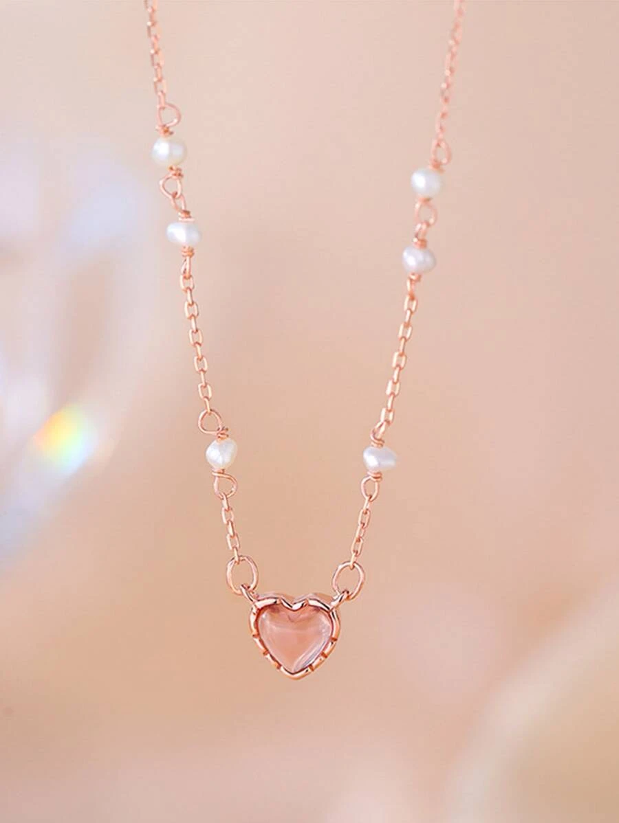 จี้สร้อยคอ แต่งไข่มุกเทียม ติดเพชร ลายหัวใจ kk-105
