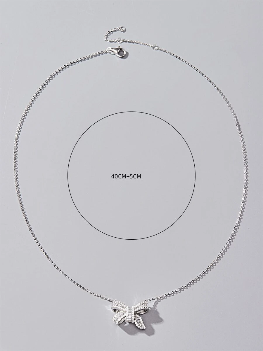 สร้อยคอ ติดเพชร โบว์ งานเงิน kk-111
