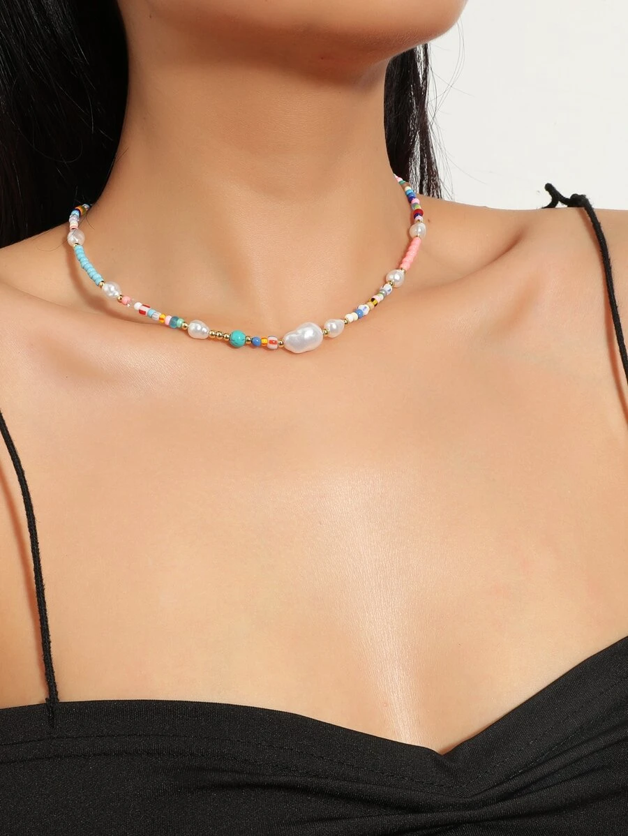 สร้อยคอ ลูกปัด ประดับ มุกเทียม kk-9