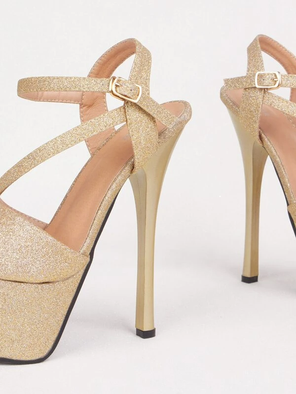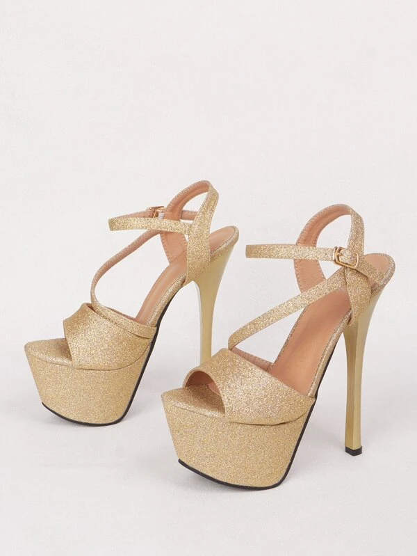รองเท้าแตะ ส้นสูง กลิตเตอร์ ผูกข้อเท้า l-65
