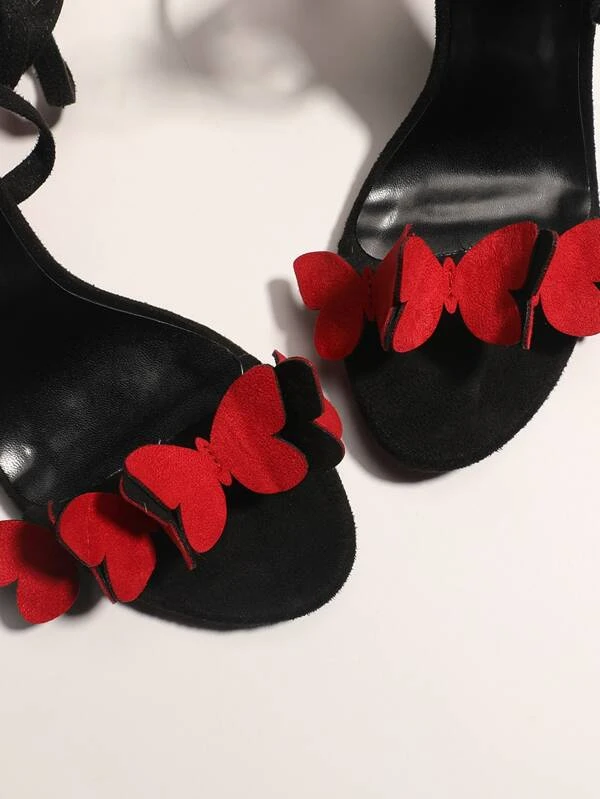 รองเท้าแตะรัดส้น บล็อคสี ผีเสื้อ แปะ l-94