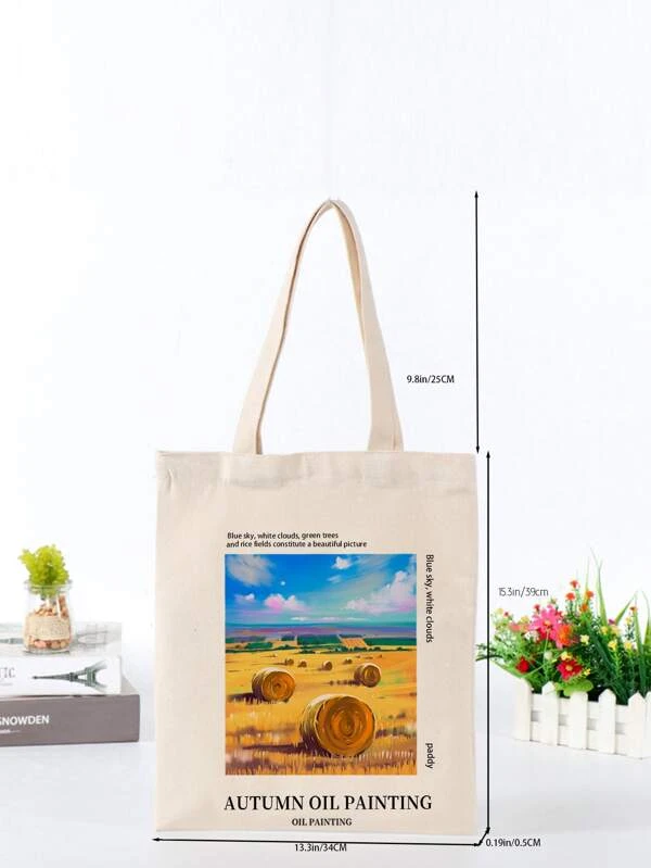 กระเป๋าช็อปปิ้ง ลายตัวอักษร และ ลายทิวทัศน์ n-32