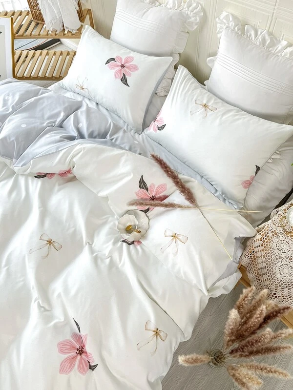 ชุดปลอกผ้านวม ไม่มีฟิลเลอร์ พิมพ์ลาย ดอกไม้ t-26