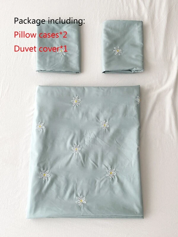 ปลอกผ้านวม ลายดอกไม้ ปักลาย (ไม่รวมไส้นวม) t-60