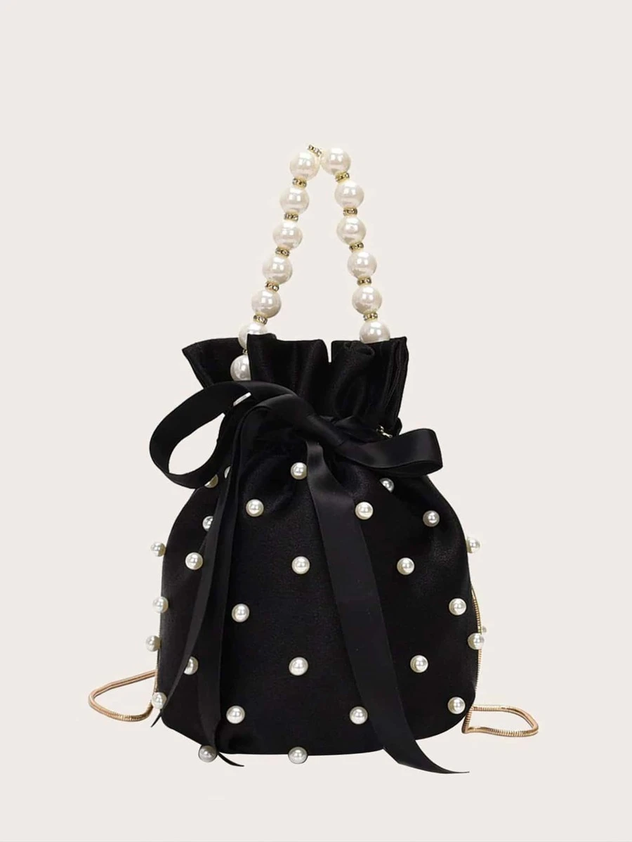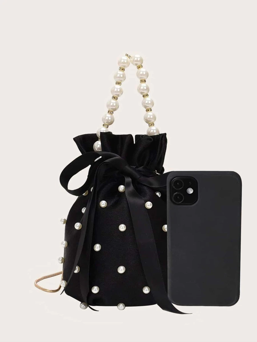 กระเป๋าถัง ไข่มุกเทียม & ประดับแก้วสี v-79