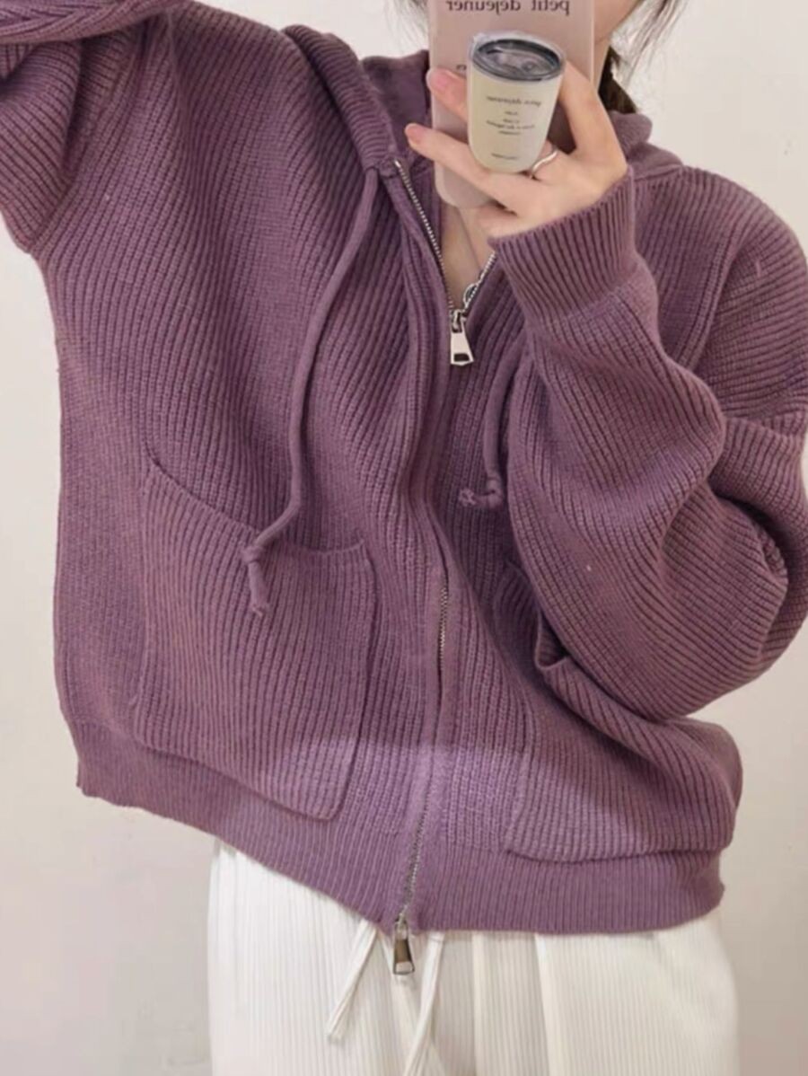 คาร์ดิแกนไหมพรมซิปหน้า มีซิปบน ล่าง 2หัว พร้อมหมวกฮู้ด สไตล์โอเวอร์ไซส์ i-7