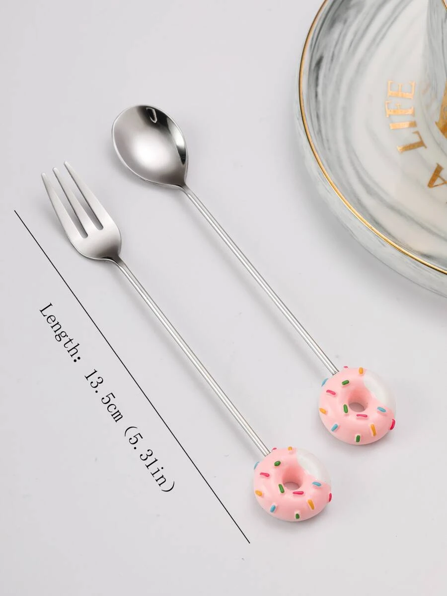 ชุดช้อนส้อม โดนัท ตกแต่ง 2 ชิ้น hh-62