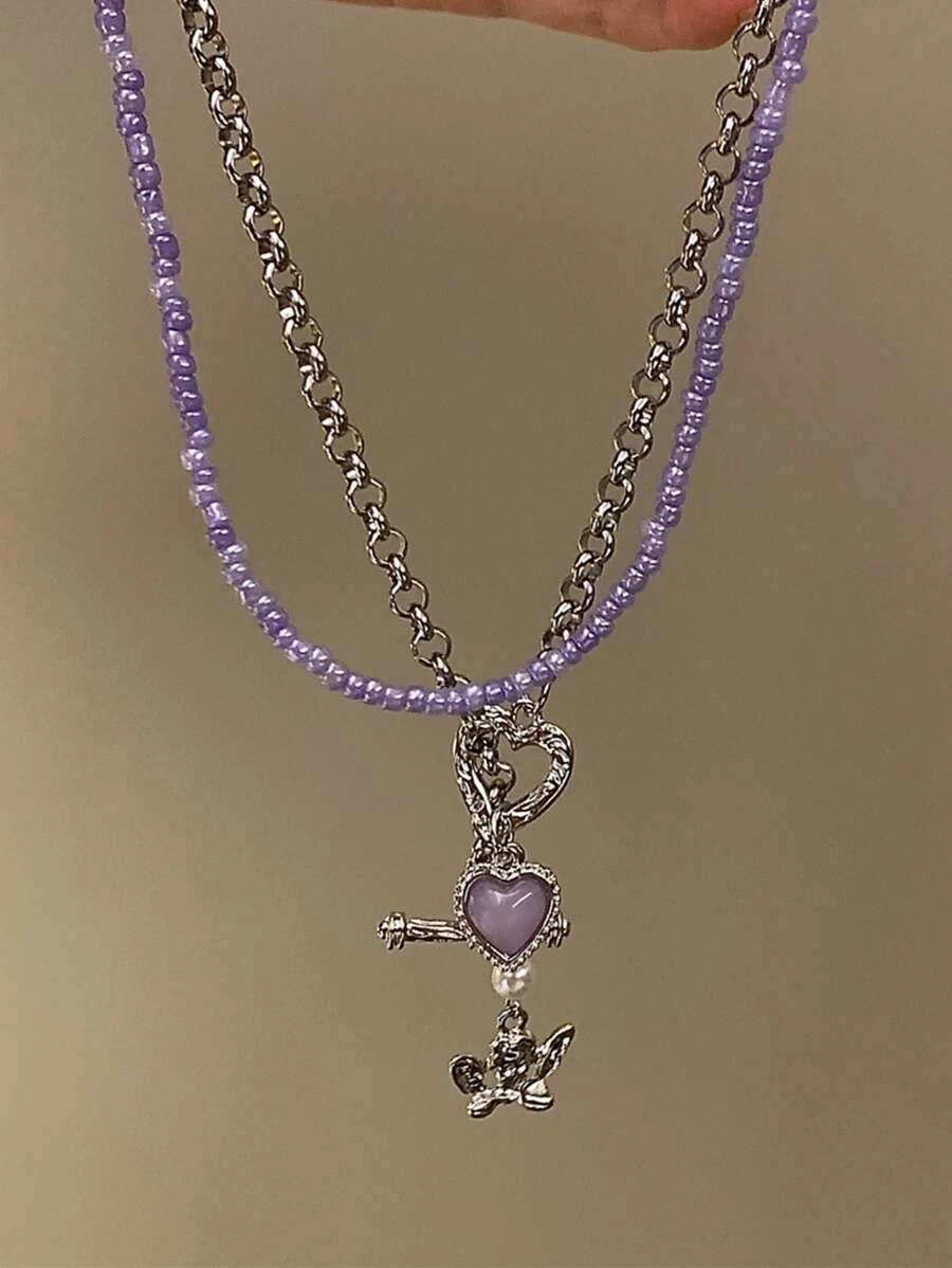 สร้อยคอ จี้ หัวใจ 2 ชิ้น kk-106