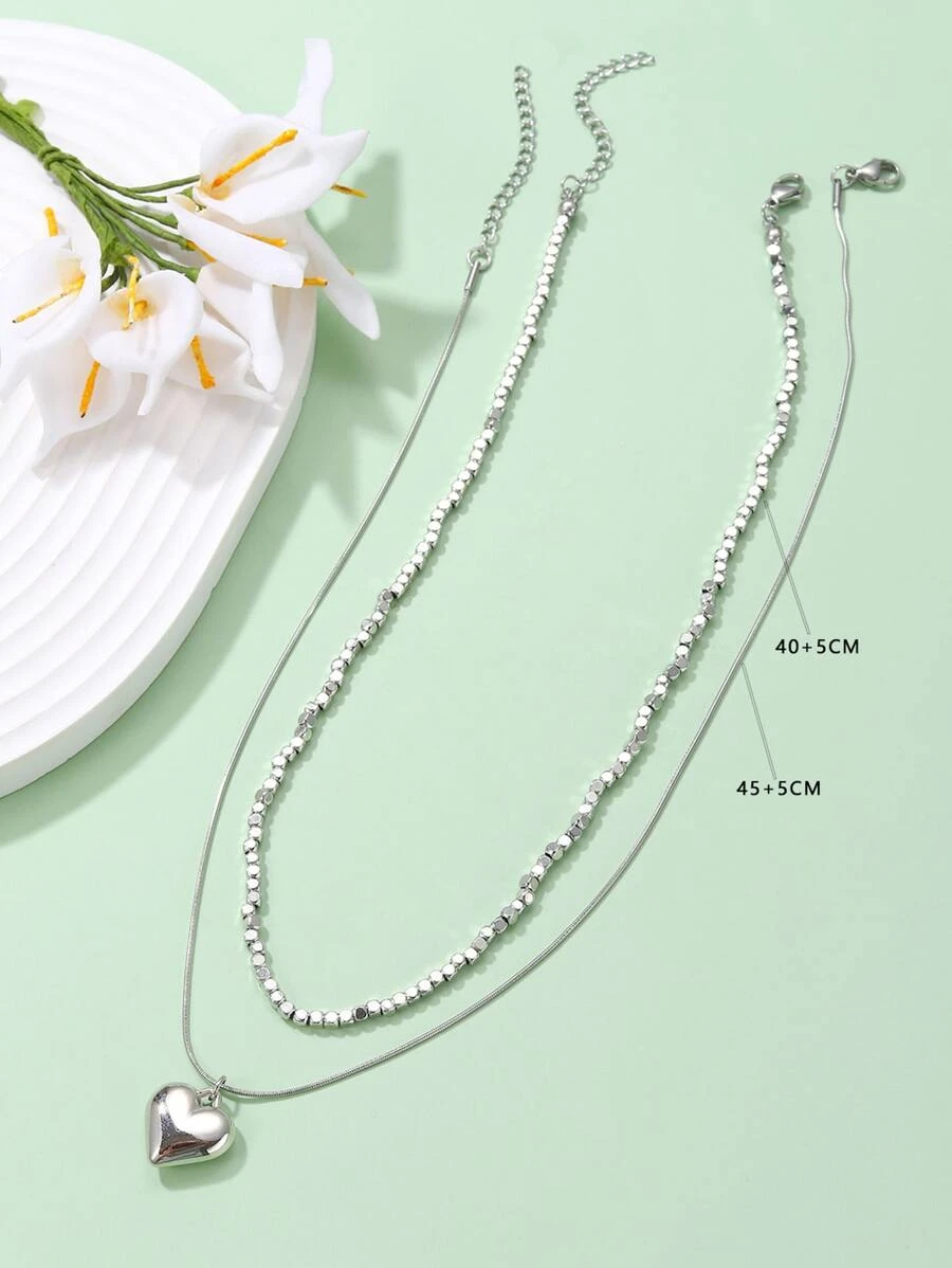 สร้อยคอ เครื่องประดับ หัวใจ 2 ชิ้น kk-73