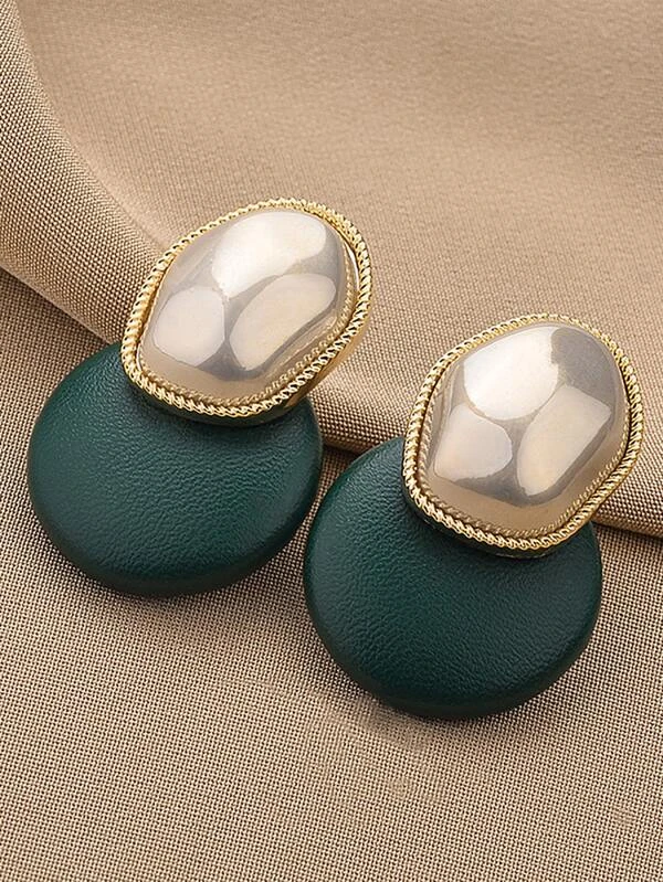 ต่างหูยาว แต่งไข่มุกเทียม ทรงกลม e-78