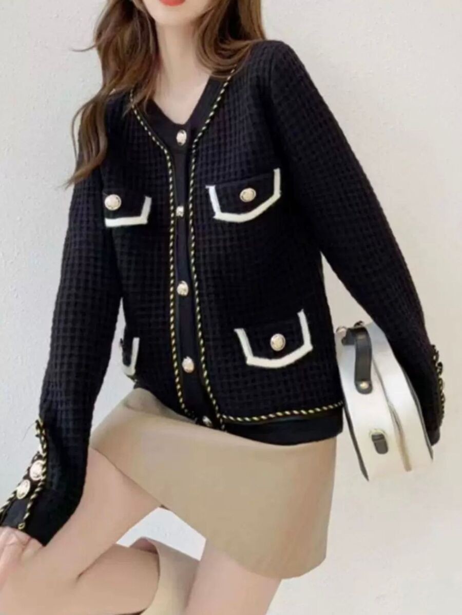 คาร์ดิแกนทรงลัชเชอรี่ ผ้าเนื้อไหมพรมนุ่ม โอเวอร์ไซส์แต่งกระดุมอะไหล่ทองดูแพงมากกก แต่งสีตัดขอบบบบ คือดี เรียบหรู คลาสสิต ตำตำ