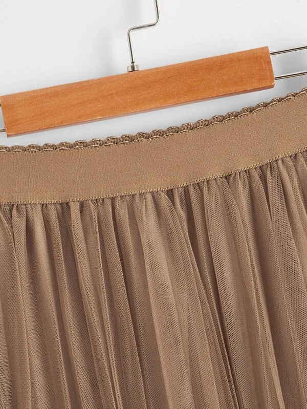 กระโปรง เอวขอบโค้ง ผ้าโปร่งชั้นนอก jj-459