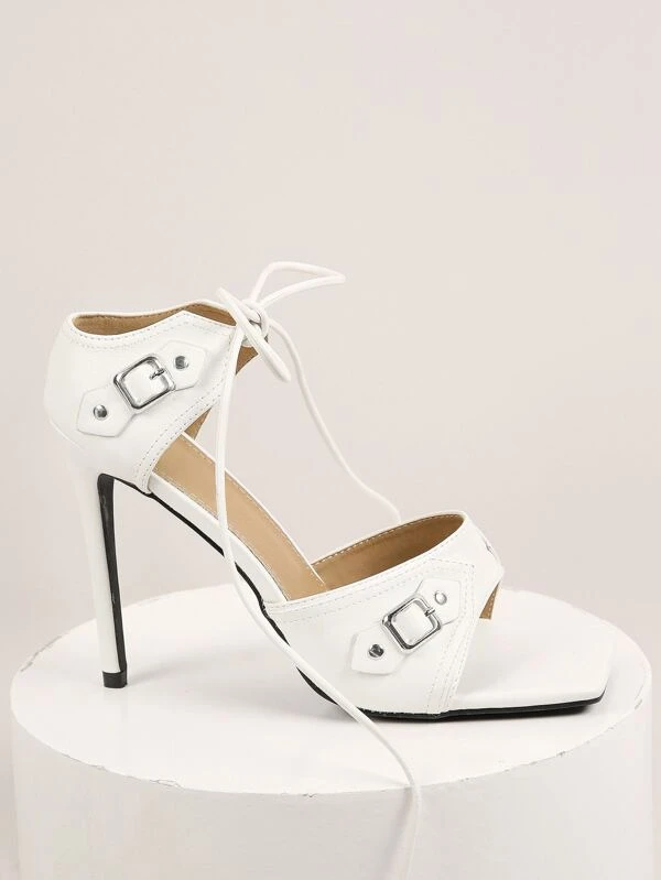รองเท้าส้นเข็ม เปิดนิ้วเท้า หัวเข็มขัดคู่ l-107