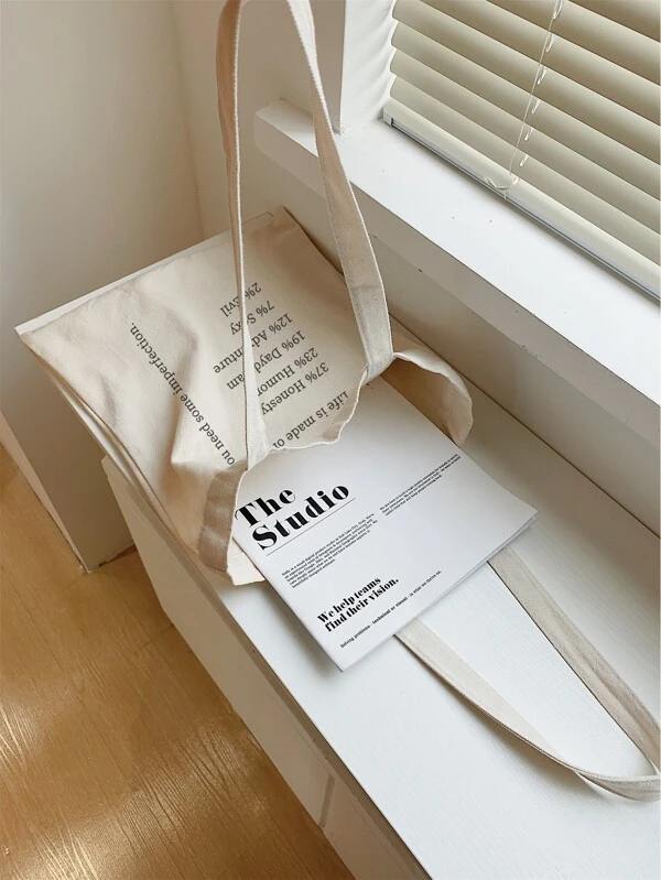 กระเป๋าช้อปปิ้งผ้าใบ ภาพกราฟิกตัวอักษร n-26