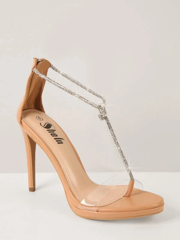 รองเท้าแตะ พลอยเทียม สาย PVC โปร่งใส ส้นสูง l-67