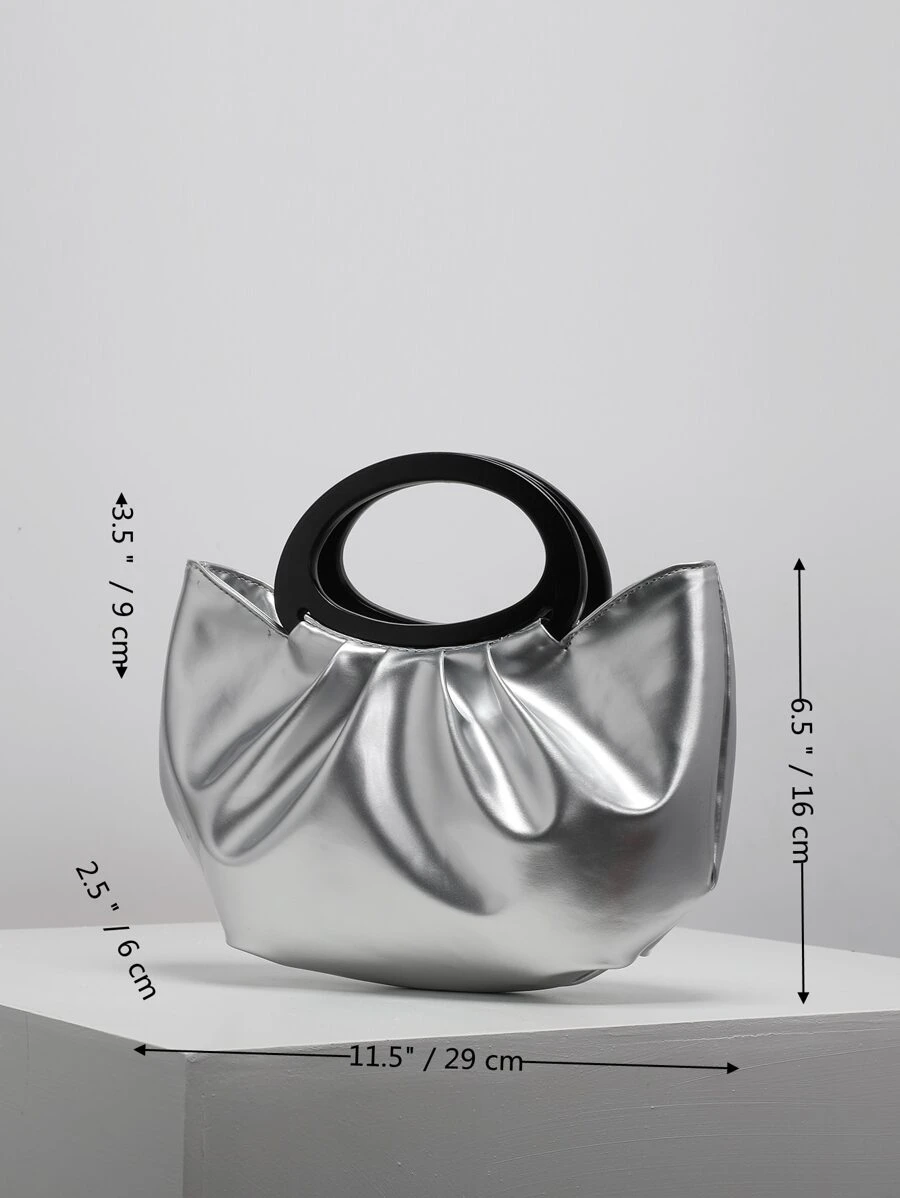 กระเป๋า ทรงย่น เมทัลลิก มีหูจับด้านบนv-44
