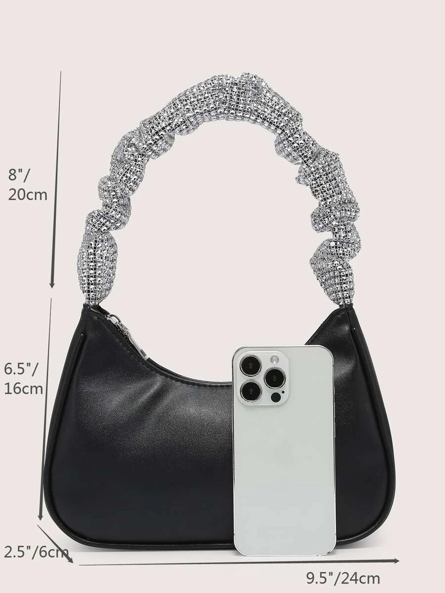 กระเป๋า บาแกตต์ ตกแต่ง พลอยเทียมv-57
