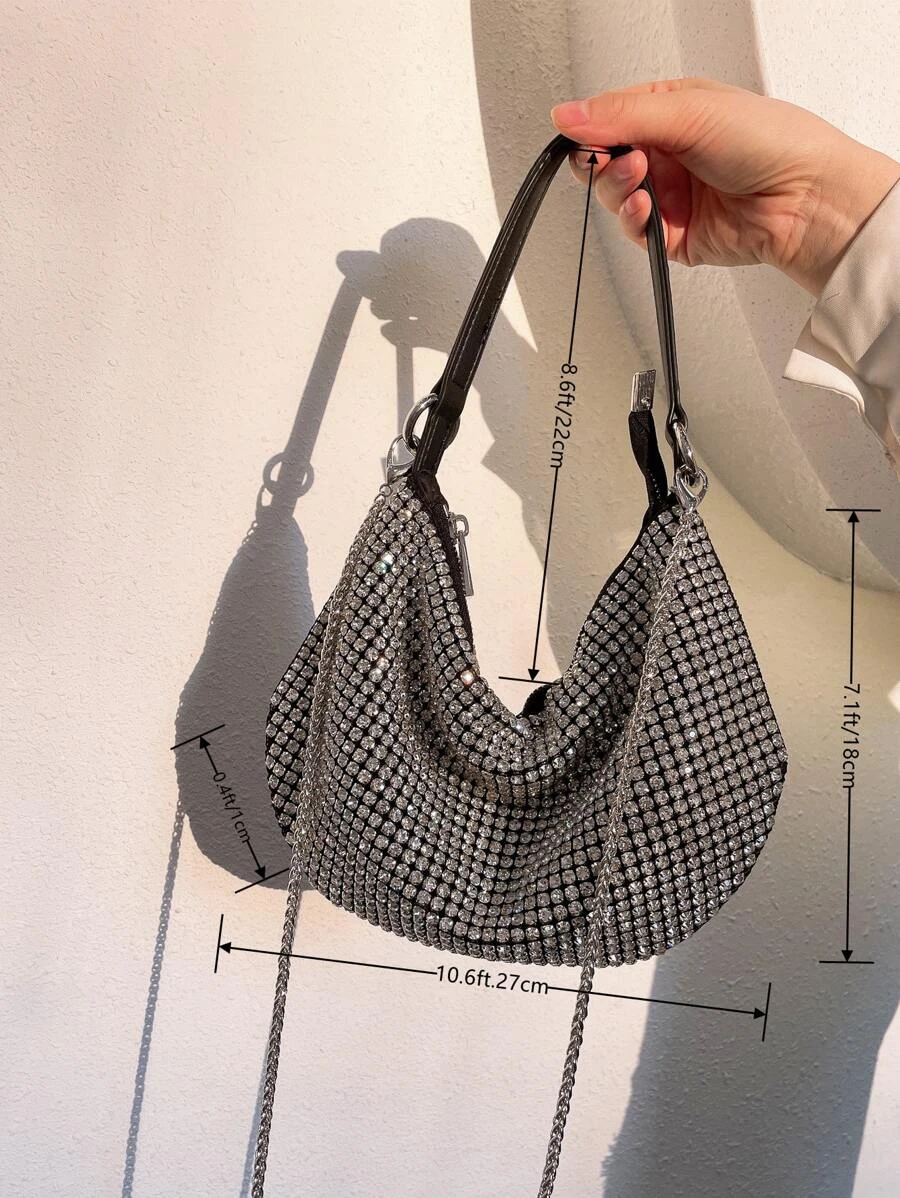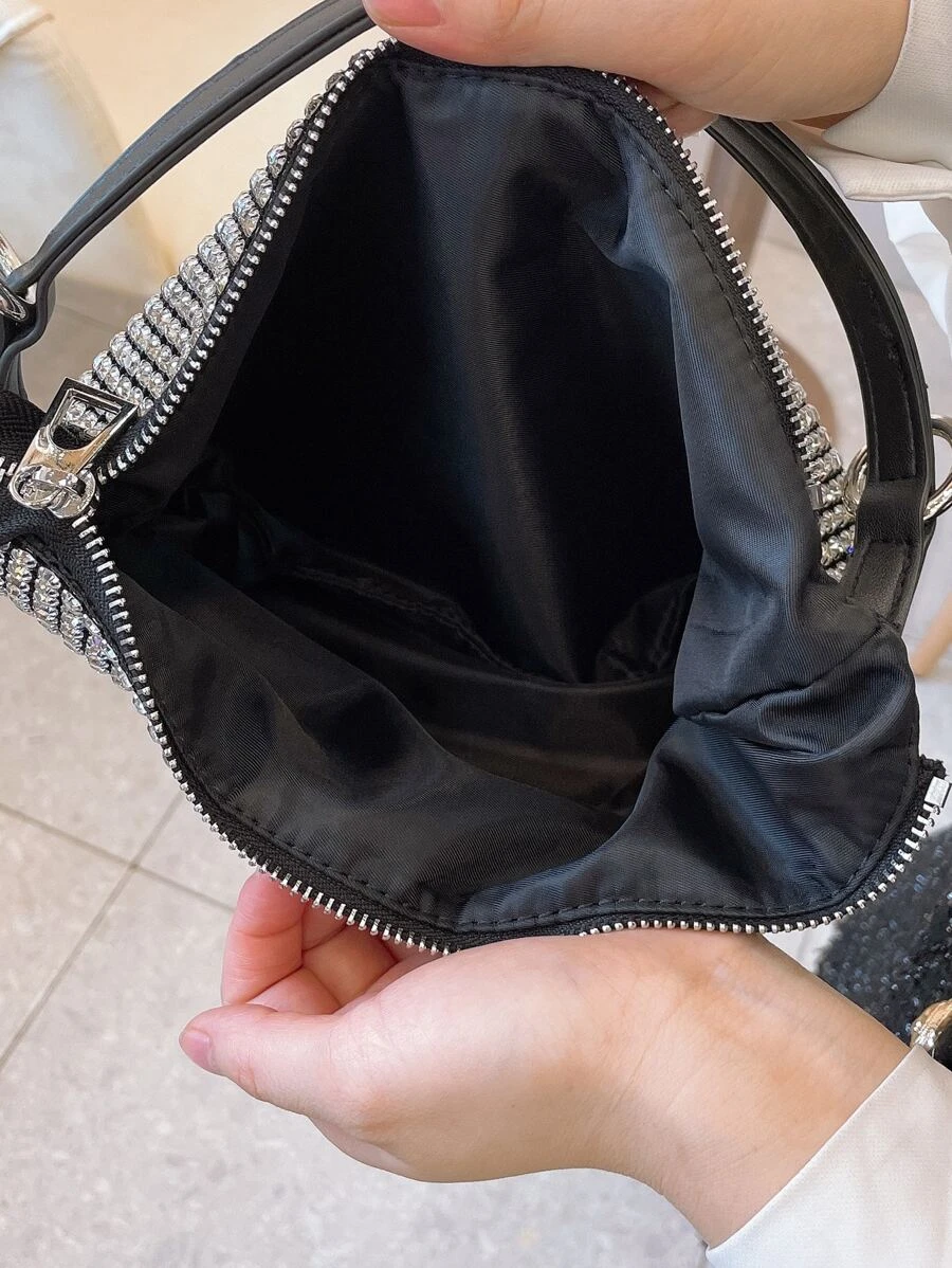 กระเป๋า บาแกตต์ ตกแต่ง พลอยเทียมv-61