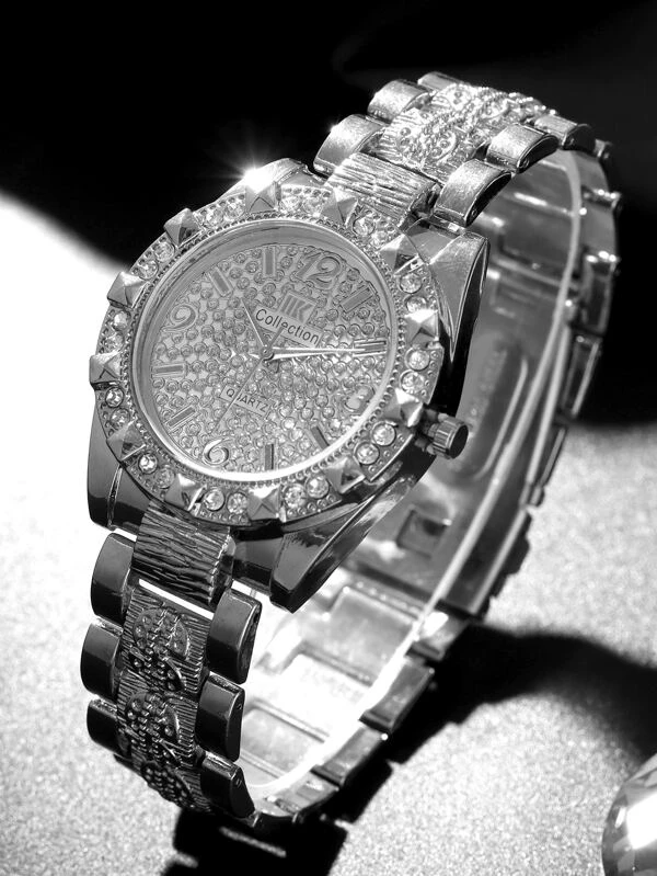 นาฬิกาข้อมือ เครื่องควอตซ์ 1 ชิ้น ติดเพชร และ สร้อยคอ 3 ชิ้น น-0146