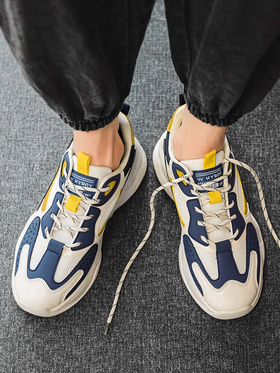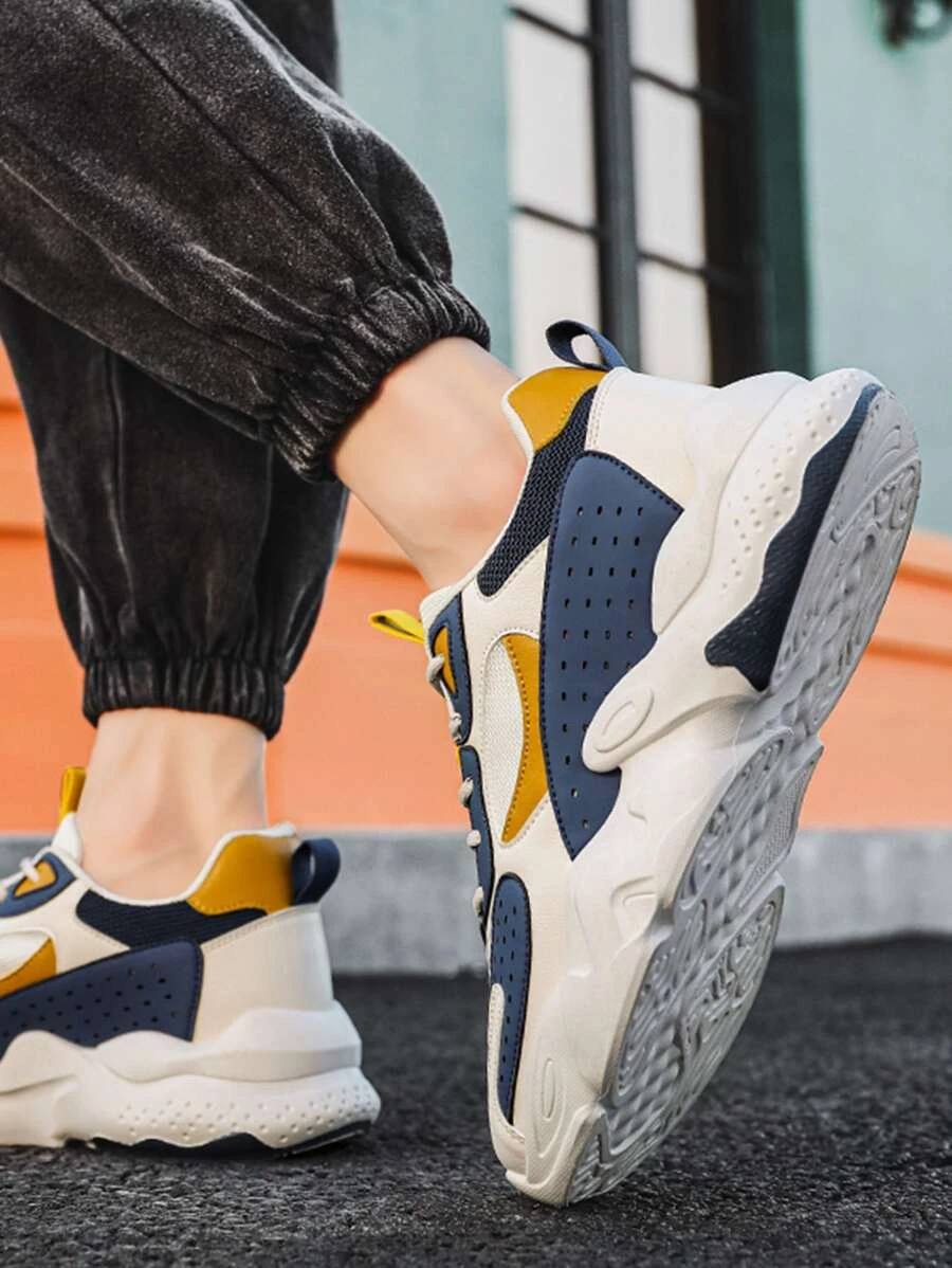 ผู้ชาย รองเท้าผ้าใบทรง Chunky บล็อคสี แพทช์ ตัวอักษร สายรัดหน้า m-27 z.39-46