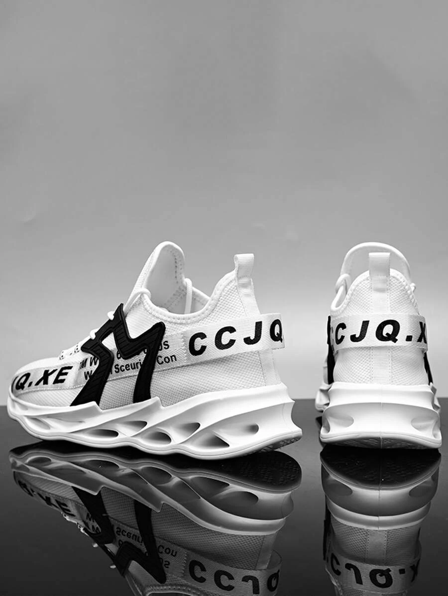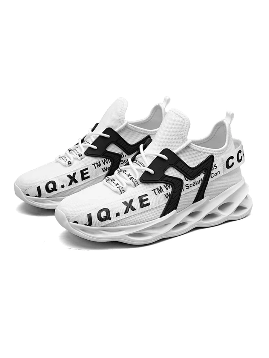 ผู้ชาย รองเท้าผ้าใบทรง Chunky ภาพกราฟิกตัวอักษร มีดีเทลผูกเชือก ถัก z39-46 m-11
