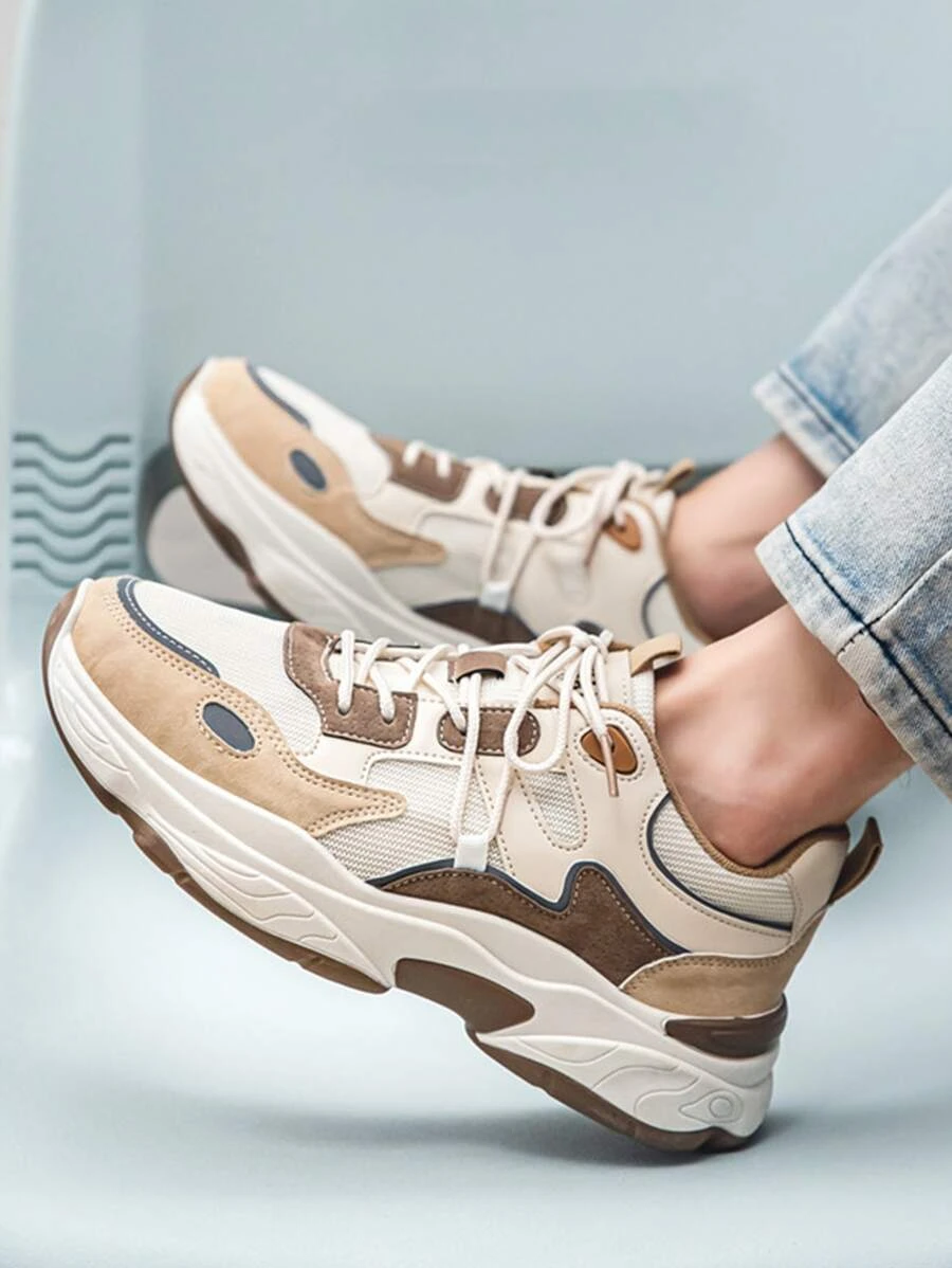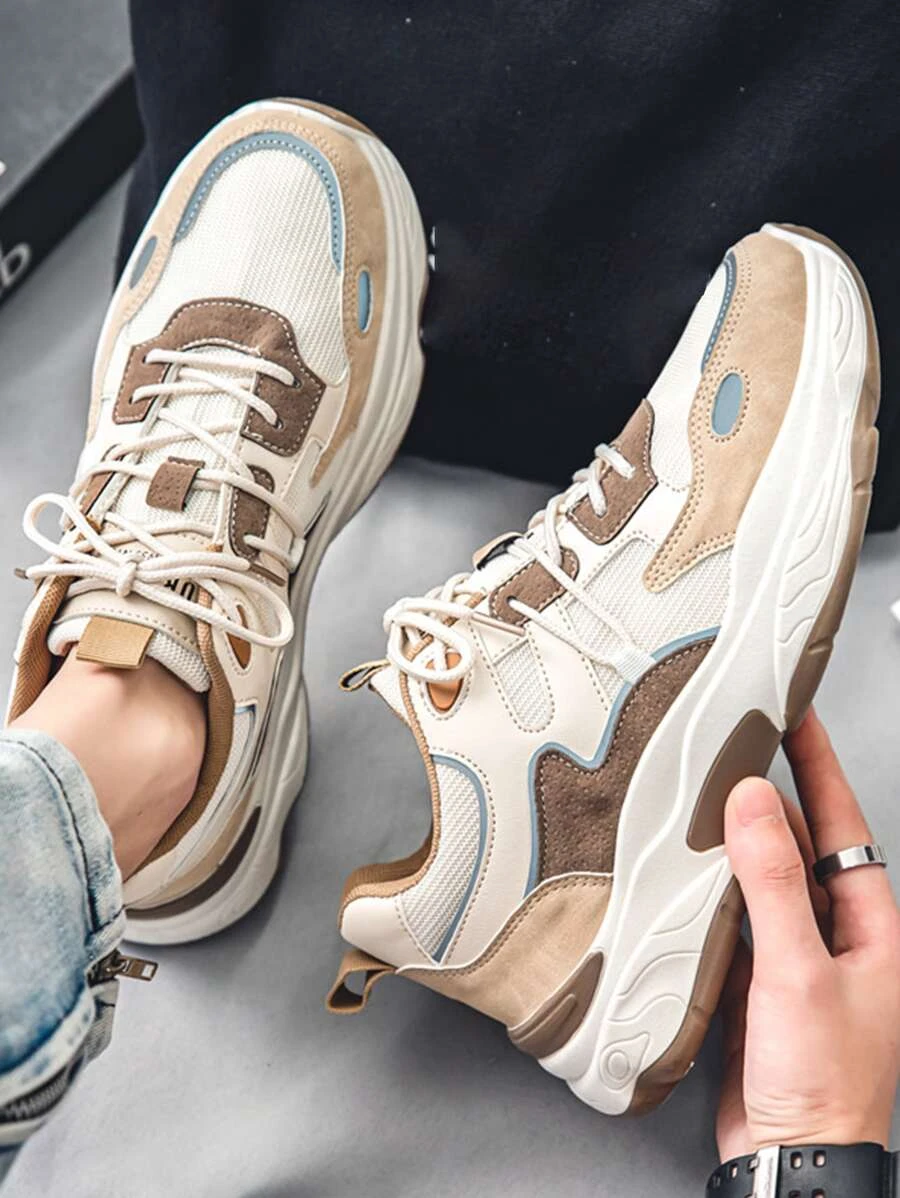 ผู้ชาย รองเท้าผ้าใบทรง Chunky บล็อคสี สายรัดหน้า m-37 z.39-46