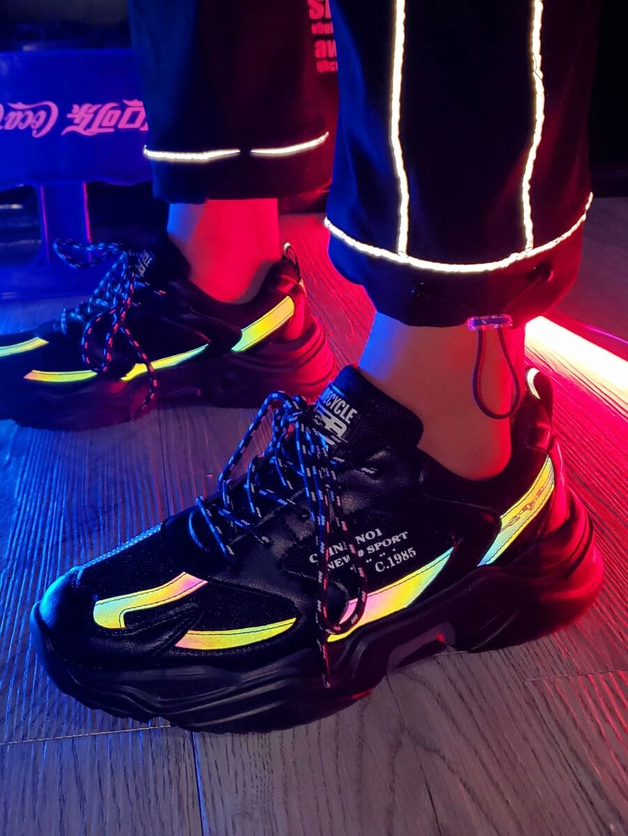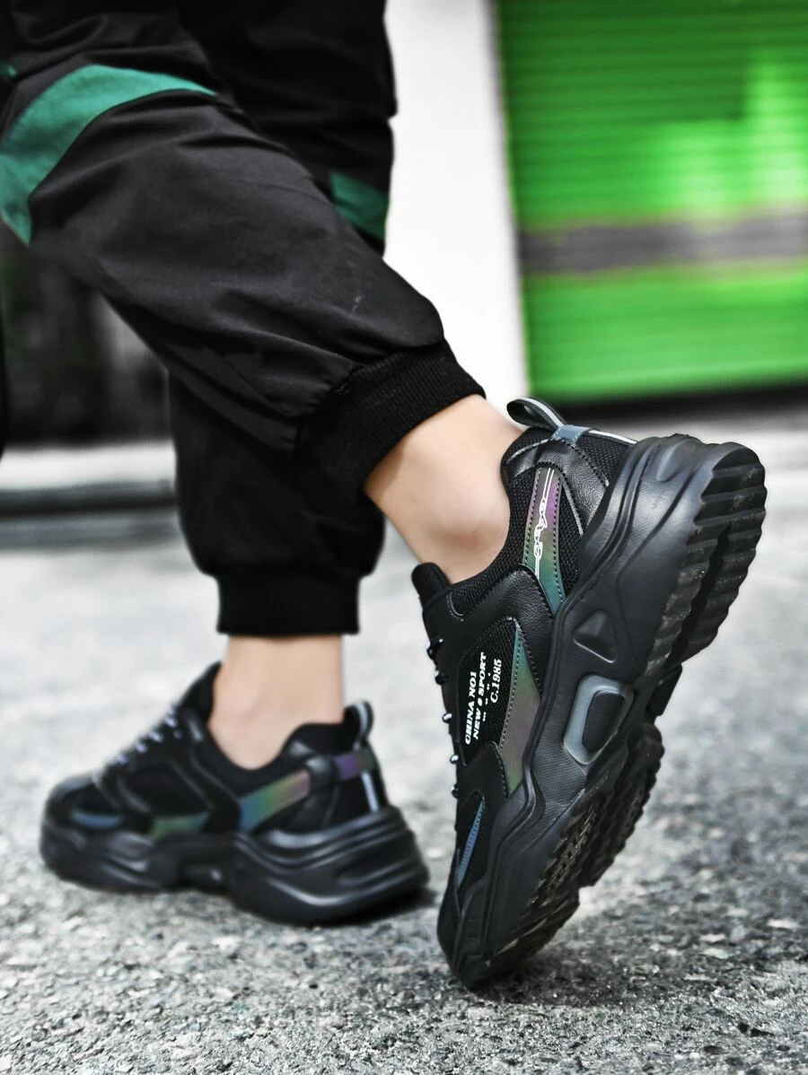 ผู้ชาย รองเท้าผ้าใบทรง Chunky ภาพกราฟิกตัวอักษร ลูกไม้แหวกด้านหน้าnm-53 z.39-45