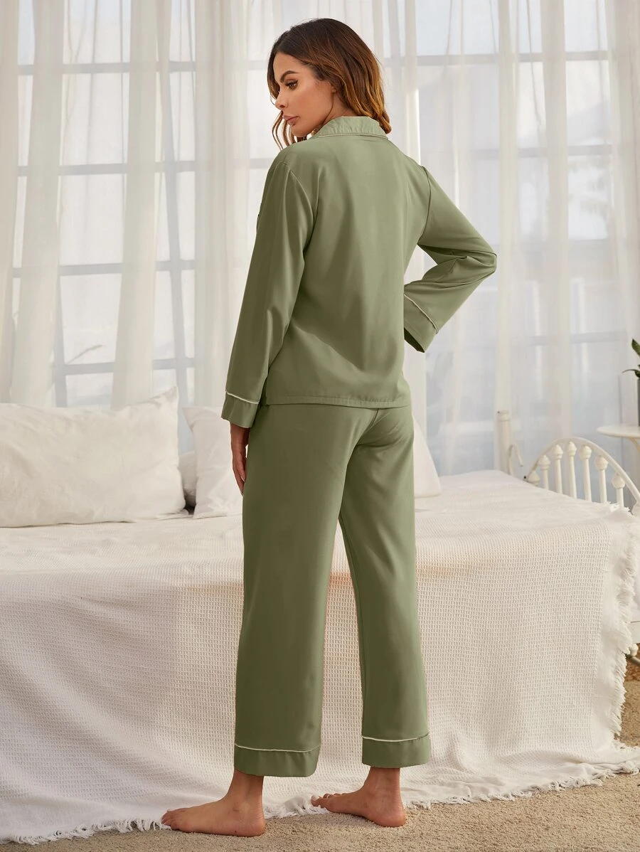 เซ็ตชุดนอน ชุดลายริ้ว Contrast Binding กระดุมแถวหน้า bb-59