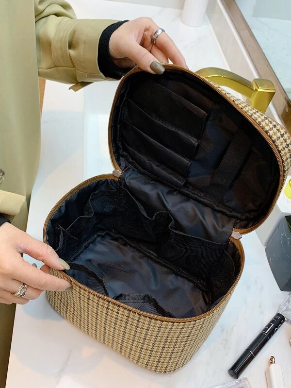 กระเป๋าถัง พิมพ์ลายฟันสุนัข Houndstooth ซิปคู่ ค-34