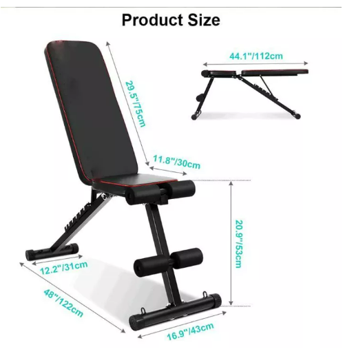 แข็งแรง สวยงาม รับน้ำหนักได้ถึง 250 กิโลกรัม ผลิตจากเหล็กคุณภาพสูง (High Quality Steel)พับได้ โดยพับแล้วมีขนาดเป็น 80 x 32 x 50 ซม.มีสปริงช่วยดึงตัวขณะเล่นหน้าท้องซิทอัพ ช่วยให้เล่นซิทอัพได้ง่ายขึ้น และนานขึ้นปรับระดับองศาการซิทอัพได้ 2 ระดับตามความต้องการปรับระดับระดับที่ล็อคเข่าได้ 4 ระดับ รองรับทุกๆ ความสูงของผู้เล่นมีแกนจับด้านปลายของเก้าอี้ รองรับการวิดพื้น Push Up กับตัวเก้าอี้ป้องกันอาการบาดเจ็บได้เป็นอย่างดีมีแกนจับข้างของเบาะเก้าอี้ รองรับการวิดพื้นแบบ Bench Push Upมาพร้อมสายแรงต้าน สำหรับเล่นไหล่และหลัง ได้เบาะหนา. หุ้มด้วยหนังเทียม PU อย่างดี ทนทาน ไม่ขาดง่าย ไม่มีปัญหาเรื่องเหงื่อไคลรองรับการเล่น Reverse Crunch และ Leg Raise ซึ่งต้องมีเบาะที่ใหญ่ และแข็งแรง ถึงจะรองรับท่าเหล่านี้ได้น้ำหนัก 8 กก.