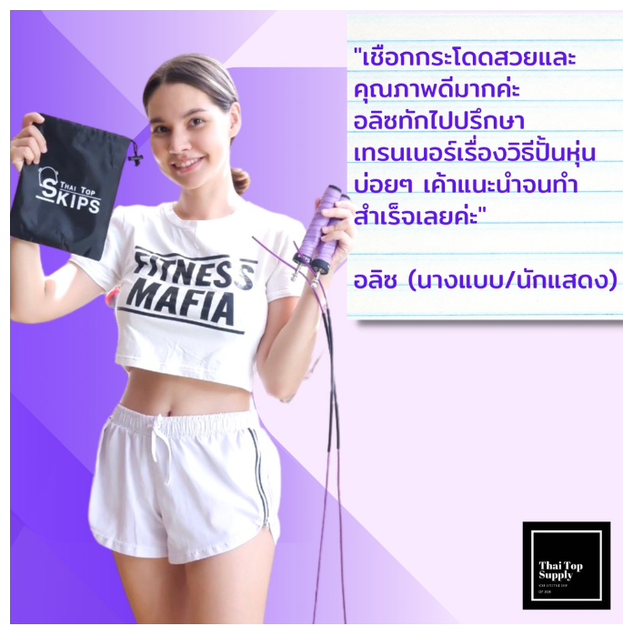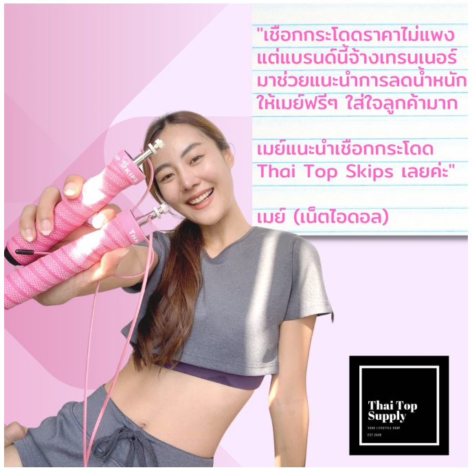 ขอบคุณที่สนันสนุนแบรนด์ไทย.. เชือกกระโดด คุณภาพระดับมืออาชีพ ต้องเชือก Thai Top Skips .. รุ่นใหม่ล่าสุด!!