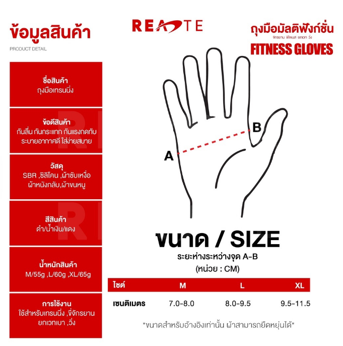 - ถุงมืออเนกประสงค์ ฟิตเนส ยกน้ำหนัก ปั่นจักรยาน