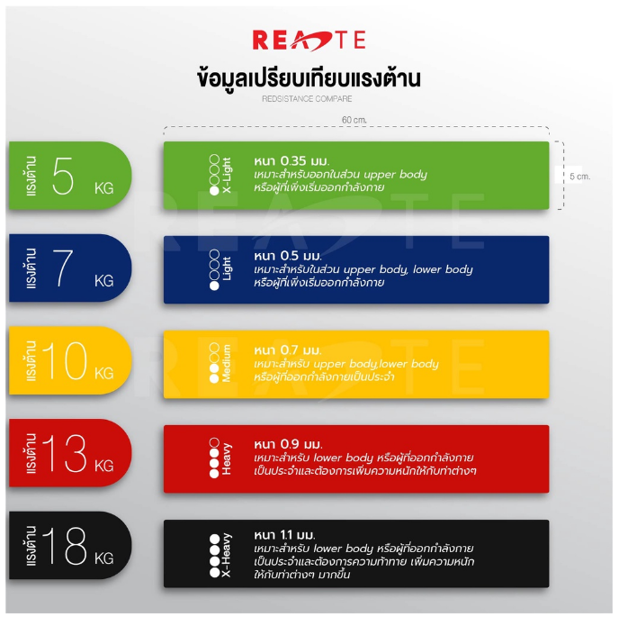 - แรงต้าน 5 ระดับ สำหรับท่าออกกำลังกายที่แตกต่างกัน