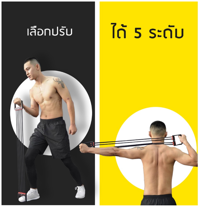 ปรับเพิ่มลดแรงต้านตามจำนวนเส้นยางยืดได้ตามความหนักเบาของการออกกำลังกาย